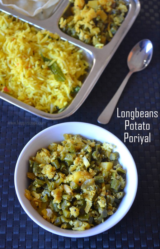 Beans varieties are my least preferred vegetable for making poriyal. I can eat it only in the form of paruppu usili. When I was in Chennai, my neighbour used to give me fresh karamani (long beans) from their home garden. I always end up making usili with that and once I asked her about the dishes she makes with karamani. She gave this recipe with the combination of potato. I tried it the next day and we all loved it so much. Let's see the steps involved in making this yummy poriyal: